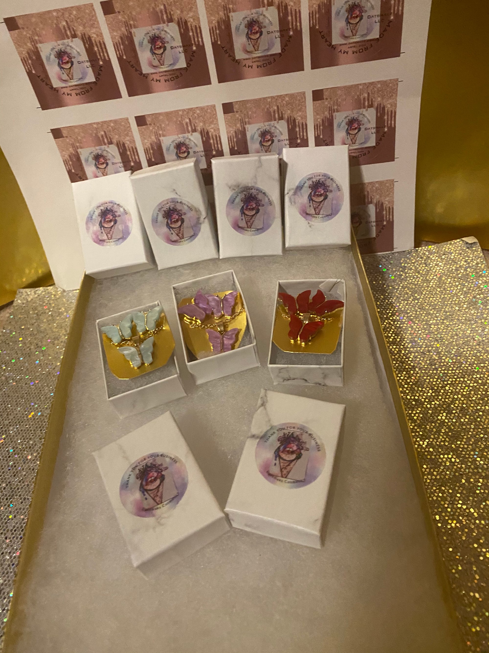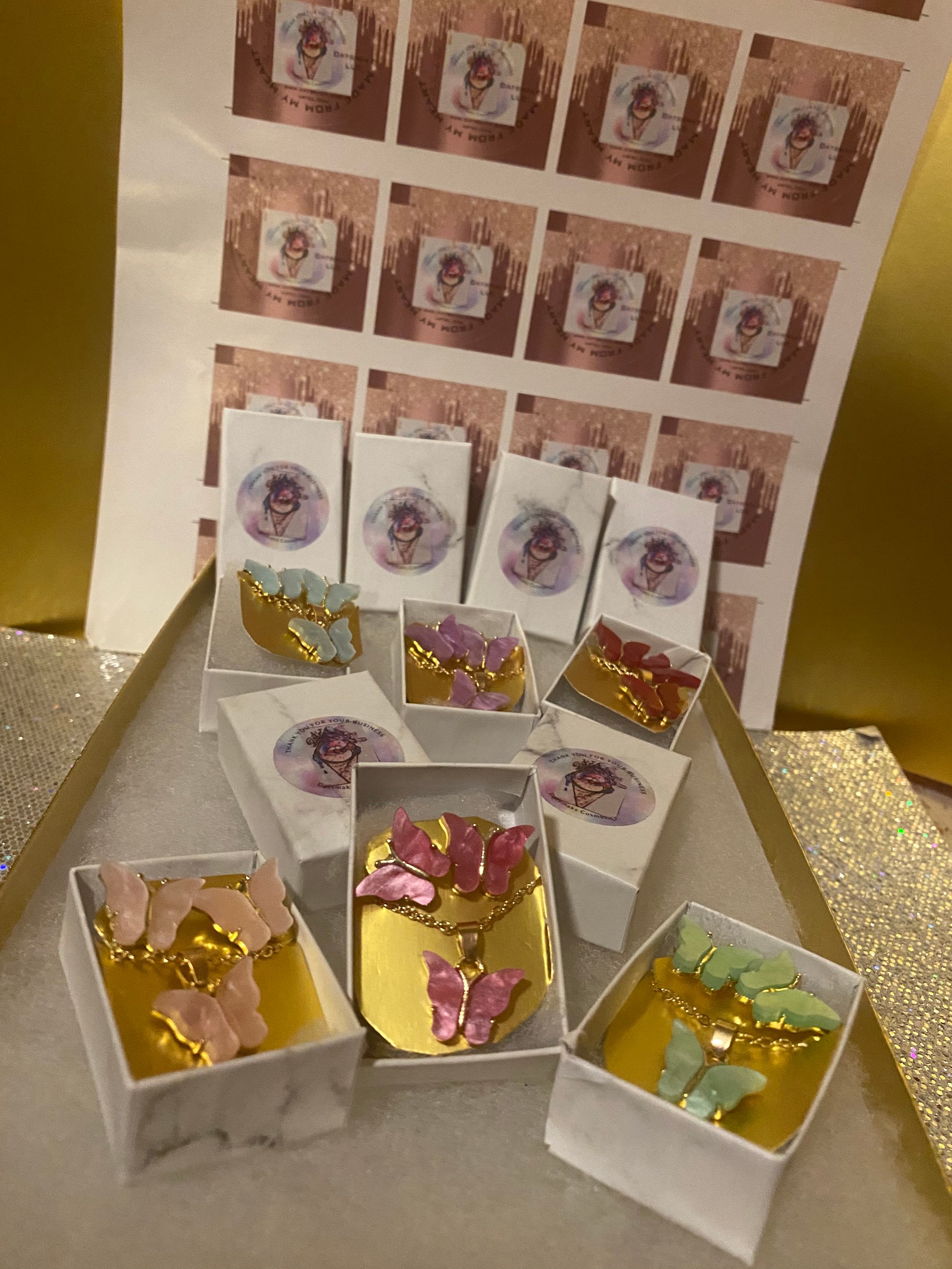 This cute box includes a cute small sized set of earrings and a matching necklace ! Specially packed with love .